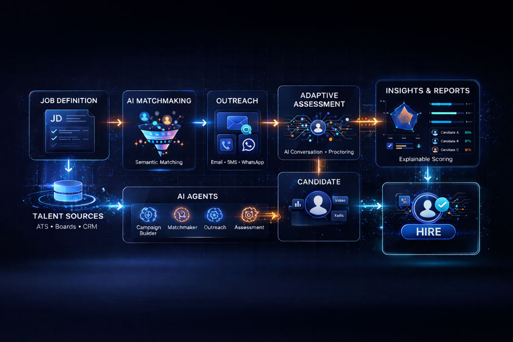 Every candidate receives a DeepLens report — up to 54 pages of evidence-based evaluation. 18 domain skills scored on a 1–10 scale, 5 soft skills with behavioural evidence, strengths/ weaknesses/ opportunities analysis, and an AI-generated hiring recommendation: Advance, Hold, or Do Not Advance. Export to ATS, share with hiring panels, or generate compliance reports — all with role-based access control.